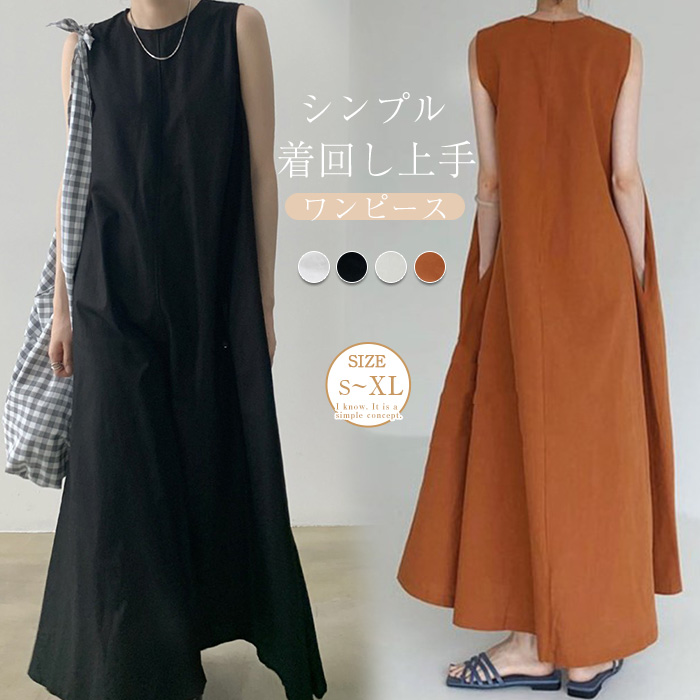 ワンピース ノースリーブ レディース 夏 ロングワンピース マキシワンピース 無地 フレアワンピース Aライン シンプル