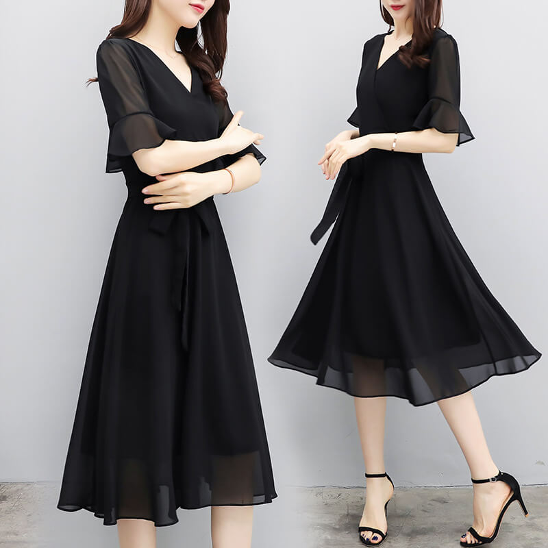 ワンピース 夏 レディース ロングワンピース シフォンワンピース 黒 リゾート ロング 膝丈 きれいめ ライン フレア 大人 上品 半袖 大きいサイズ カジュアル フォーマル 結婚式 パーティー ド