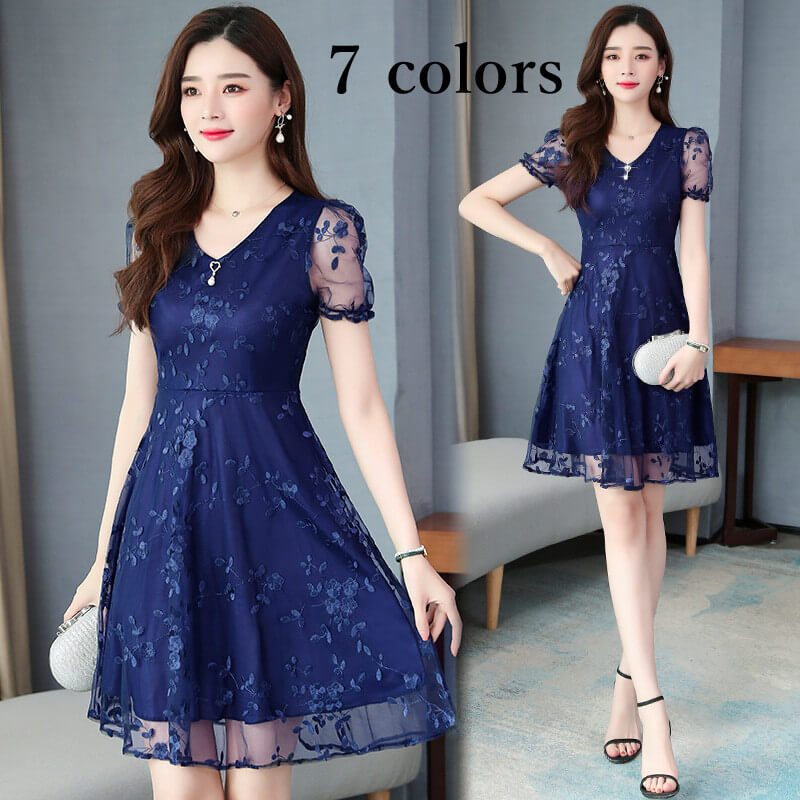 ワンピース レディース ロングワンピース 花柄 レース ロング ミニ 膝丈 きれいめ ライン フレア 大人 上品 リゾート フォーマル 半袖 大きいサイズ フォーマルドレス 結婚式 パーティー ドレ