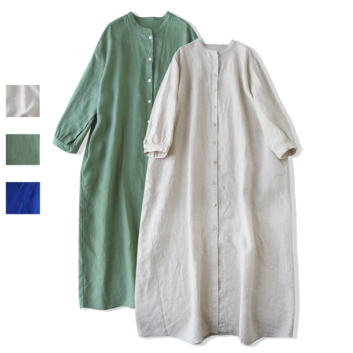 ワンピース レディース ロングワンピース リネンワンピース ロング リゾート リネン 綿麻 麻 きれいめ Aライン フレア 長袖 大きいサイズ 森ガール ゆったり 体型カバー 春 夏 秋 秋冬 シンプ