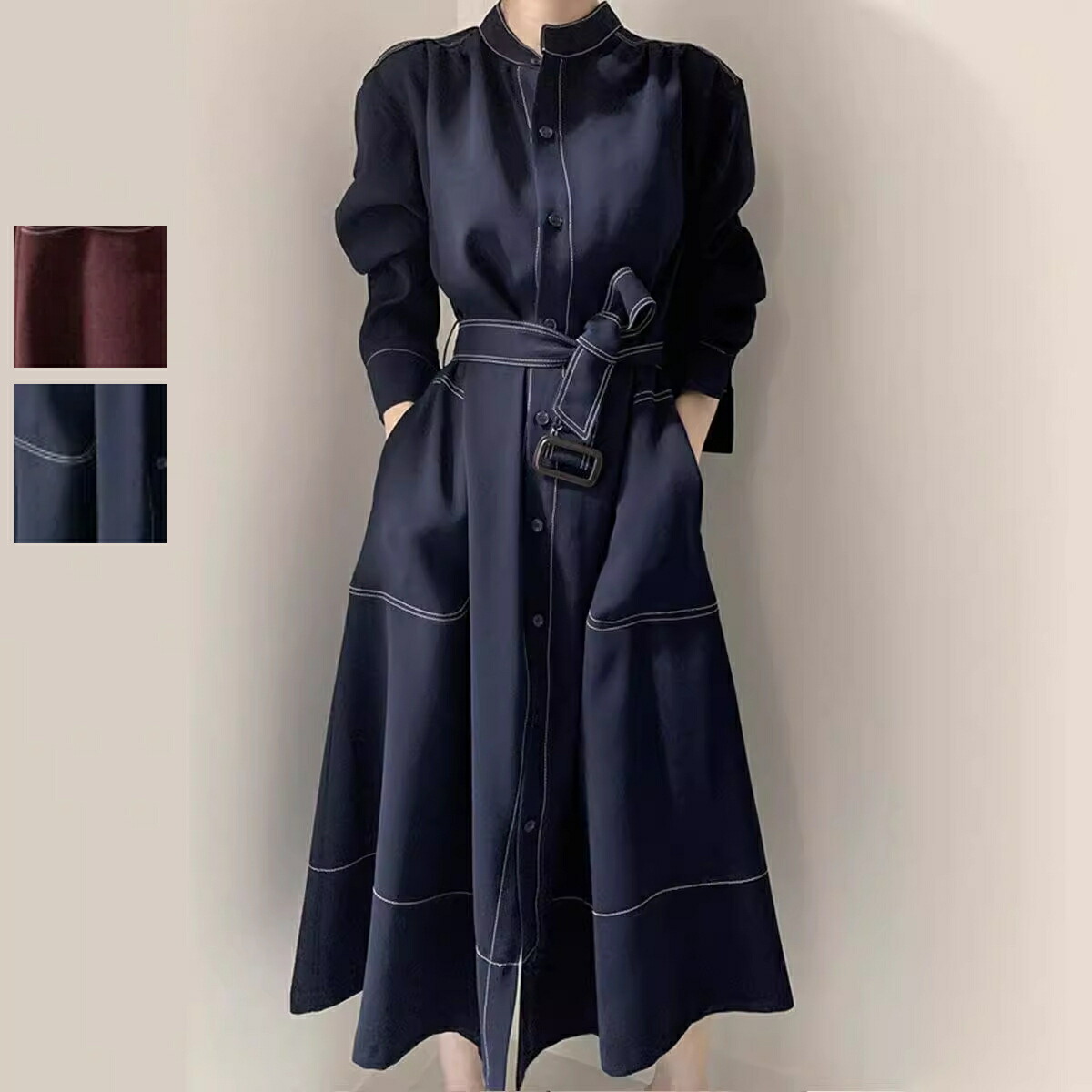 ワンピース 秋 冬 ロングワンピース ネック ワンピ ライン マキシ丈ワンピース 重ね着 秋冬春 可愛い