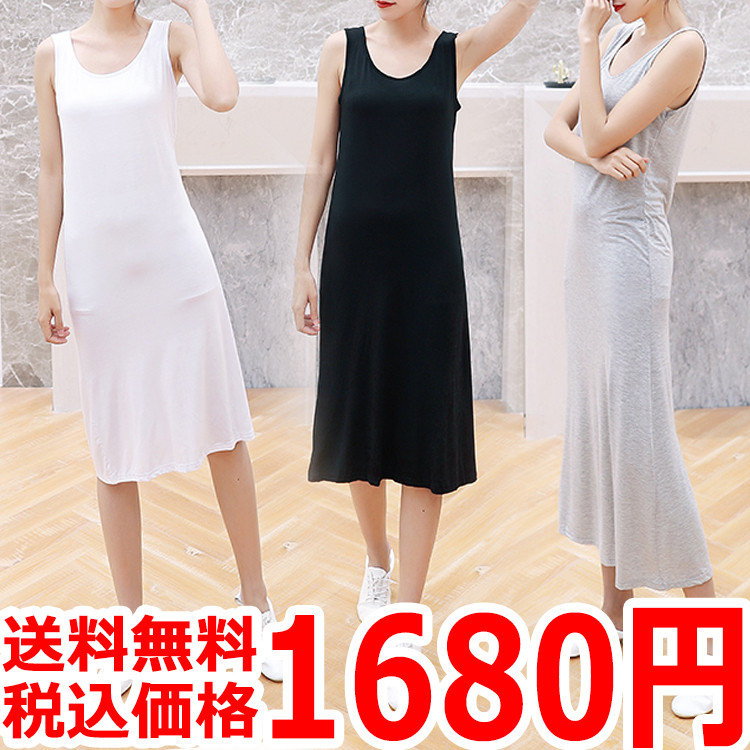 インナー レディース タンクトップ ワンピース ロングタンク タンクワンピ ノースリーブ インナー インナーワンピース 肌着 春夏秋冬 白 灰 黒 ホワイト グレー ブラック 天然素材 モダール スト