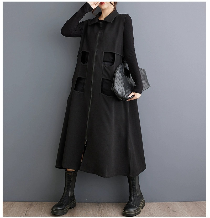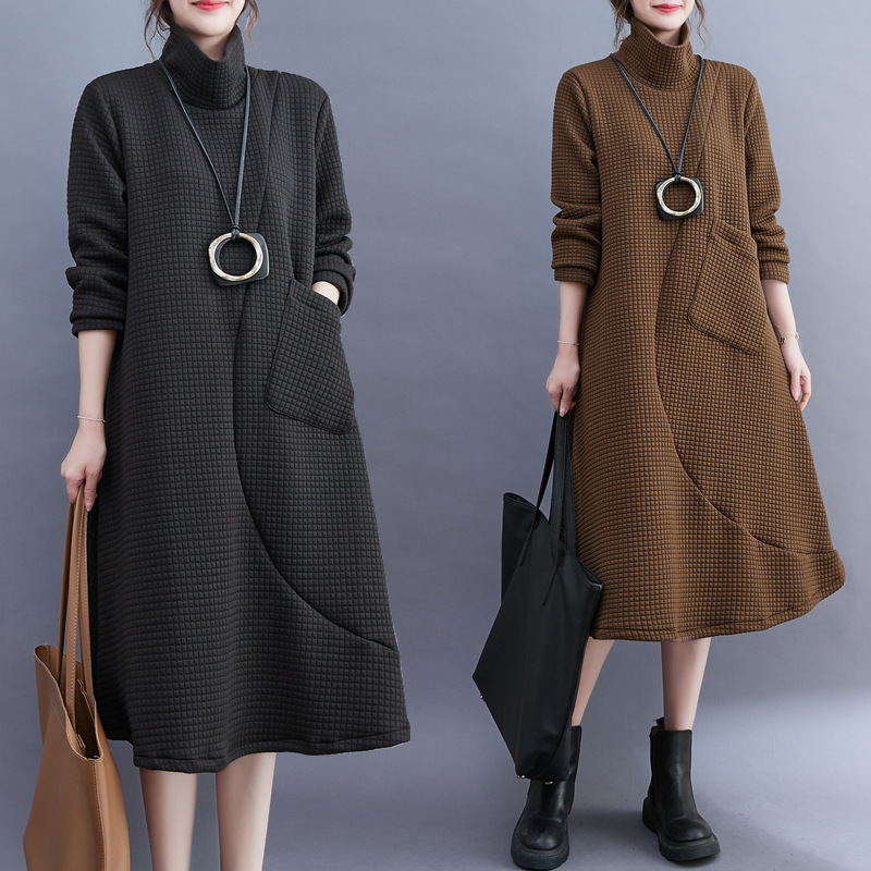秋冬のイベントやオケージョンシーン、お出かけにおすすめです 新作ロングシャツワンピース プルオーバー 長袖 春 秋冬 着痩せ