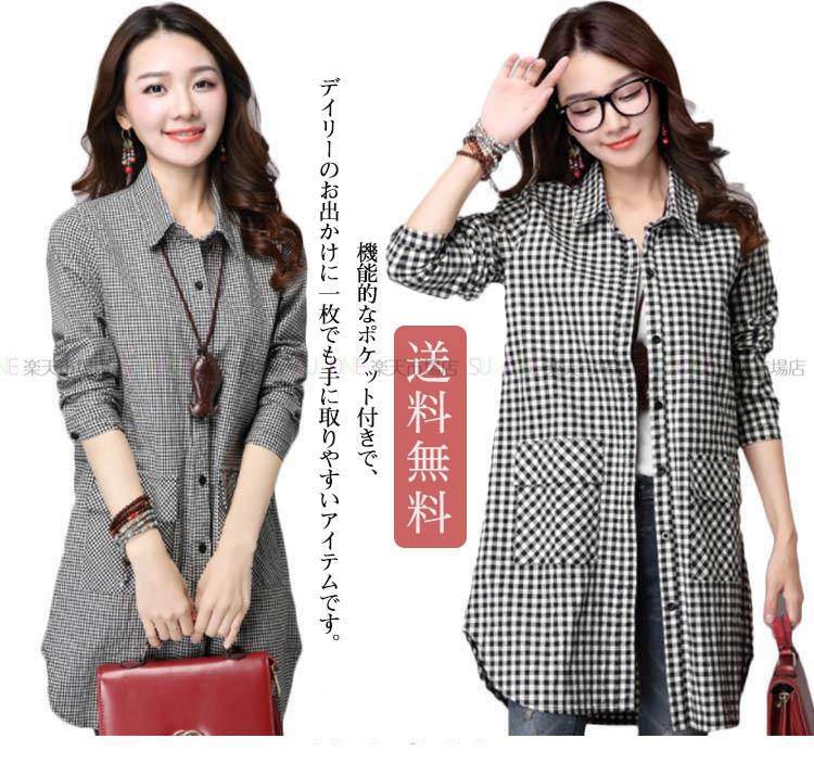 チェック シャツ ロングシャツ レディース シャツワンピ ロングカーデ 長袖 春 冬物 シャツ レディース シンプル カジュアル コーデ