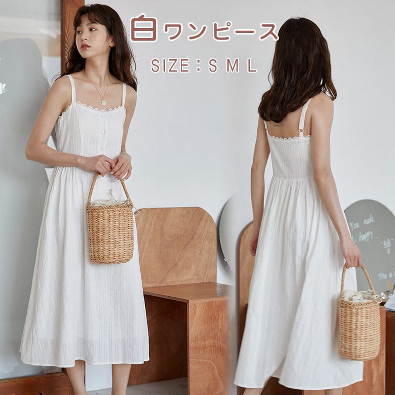 白ワンピース 結婚式ワンピース ワンピース 結婚式 フォーマルワンピース ミディアム丈 膝下丈 ハイウエスト キャミソールワンピース