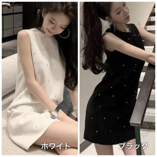 ワンピース ミニ丈ワンピース ひざ上丈ワンピース 大きいサイズ ゆったりサイズ 体形カバー レディース 夏服 新作 ラインストーン ボックス ノースリーブ クルーネック 無地 セクシー 大人スタイル