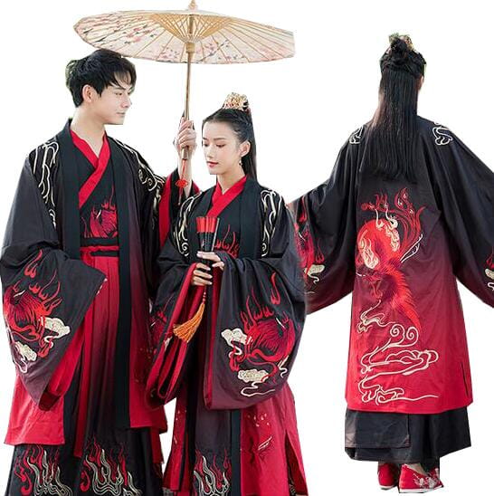男女兼用漢服唐装鳳凰刺繍 2点セット レディースファッション ワンピース