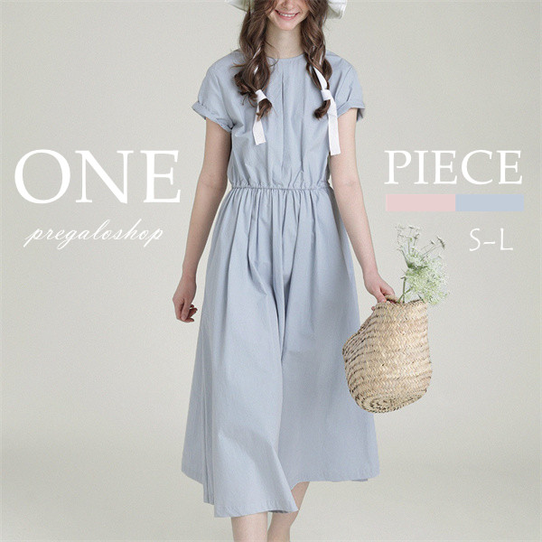 ワンピース ロングワンピ 半袖 綿 大きいサイズ ゆったり 体型カバー 春 夏 ワンピ フリーサイズ レディース ブルー ピンク おしゃれ