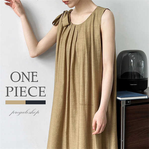 ワンピース ロングワンピ ノースリーブ 大きいサイズ ゆったり 春 夏 ワンピ M L レディース カーキ ブラック おしゃれ 旅行 通勤