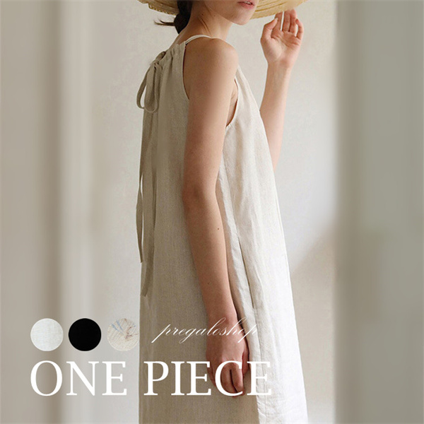ワンピース ロングワンピ ノースリーブ リネン 大きいサイズ ゆったり 春 夏 ワンピ フリーサイズ レディース ベージュ ブラック
