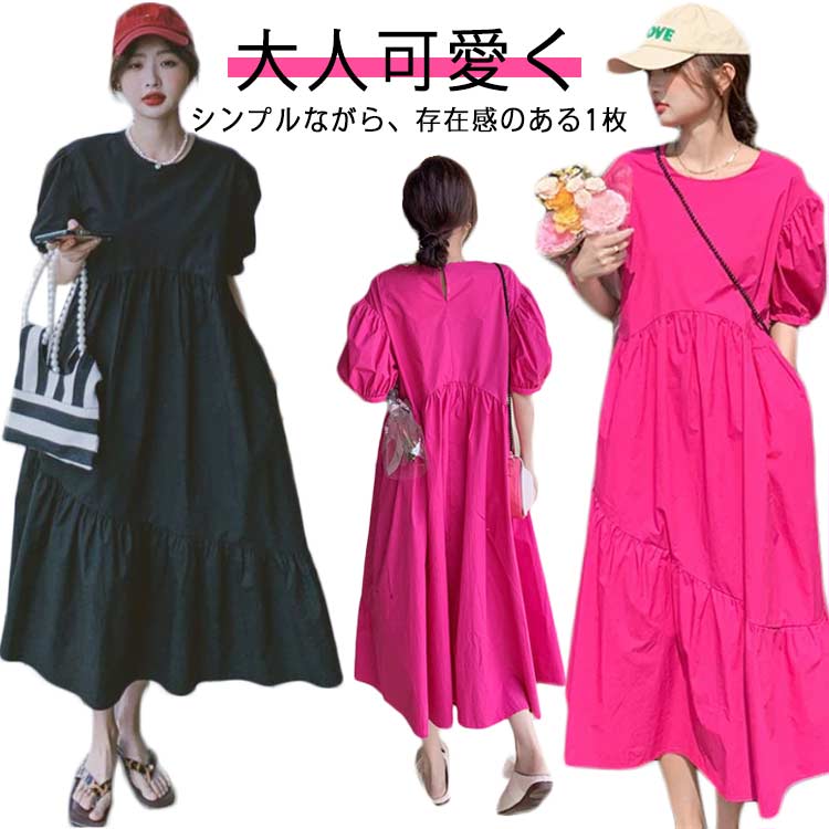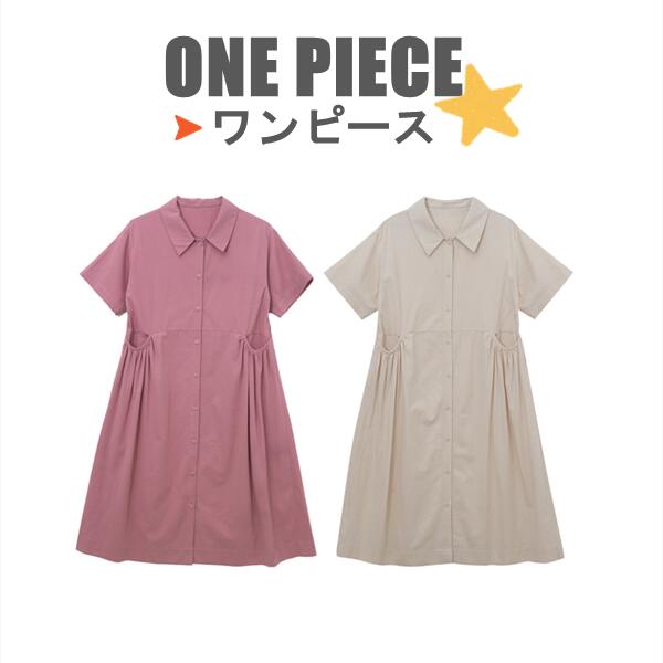 ワンピース ロングワンピ 半袖 綿100% 大きいサイズ ゆったり 春 夏 ワンピ フリーサイズ レディース ベージュ ピンク