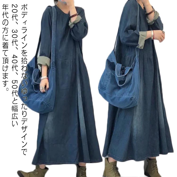 ワンピース レディース デニムワンピース 長袖 通勤 着痩せ オシャレ カジュアル 春秋 きれいめ シャツワンピース 大きいサイズ aラインワンピース 膝下丈ワンピース 着痩せ 長袖 ワンピ 上品 2