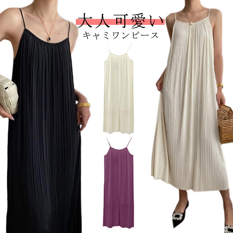 ロング丈 大人可愛い キャミワンピ キャミワンピース ノースリーブワンピース キャミソールワンピース プリーツ
