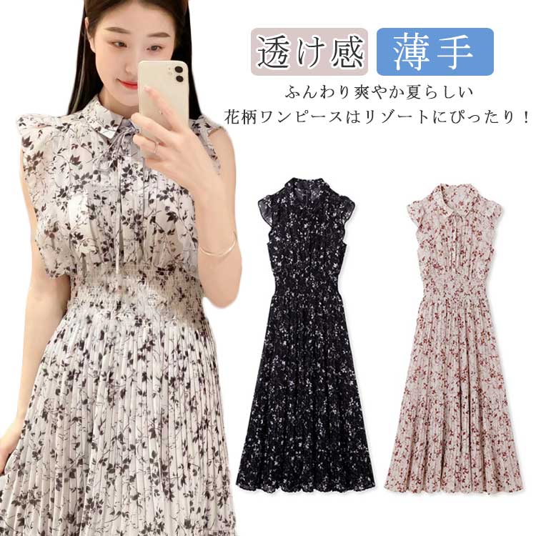 Aライン ロング ミディアム丈 膝丈 花柄 ワンピ ワンピース ロングワンピース リゾートレディースファッション ワンピース