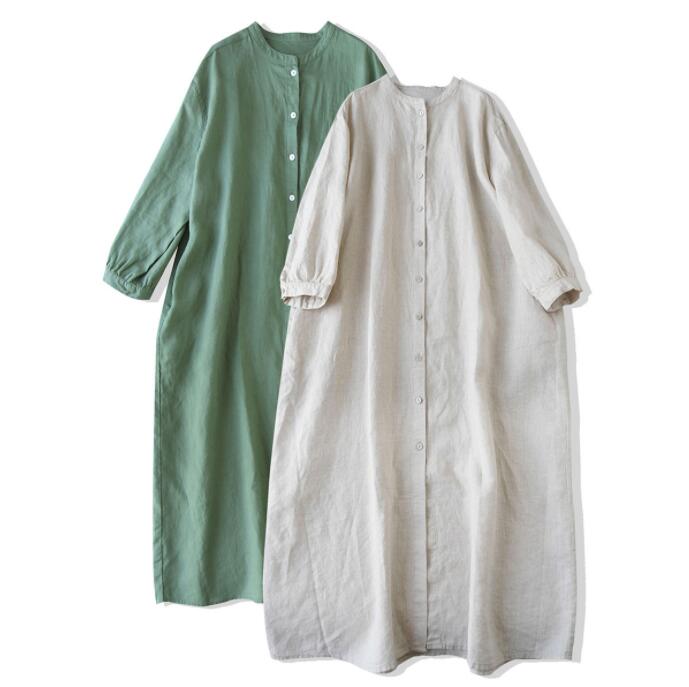 シャツワンピースリネンワンピース 春ワンピースロングワンピース ナチュラル 5分袖 大人可愛い カジュアル シンプル おしゃれ お出かけ