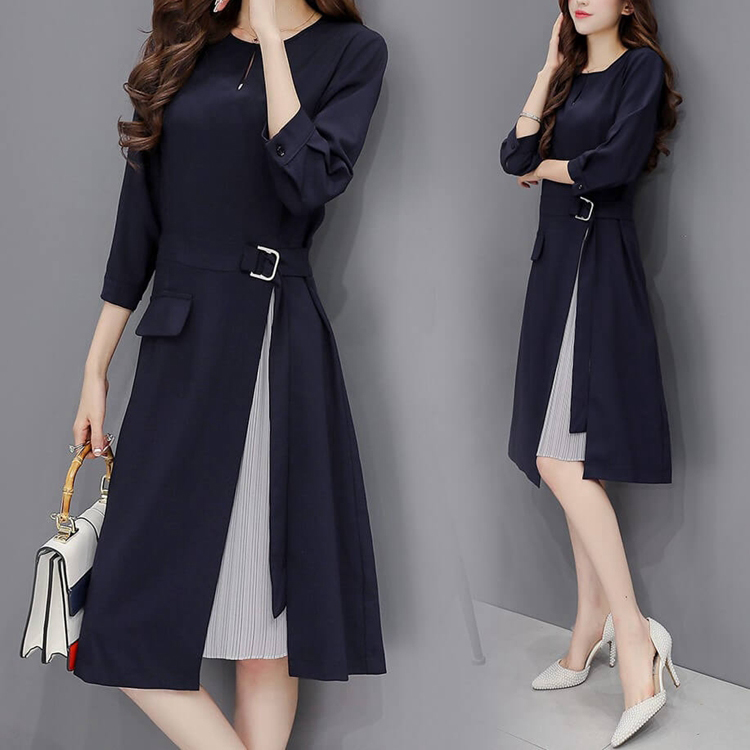 ワンピース レディース デニムワンピース 長袖 通勤 着痩せ オシャレ カジュアル 春秋 きれいめ シャツワンピース 大きいサイズ ラインワンピース 膝下丈ワンピース 着痩せ 長袖 ワンピ 上品 2