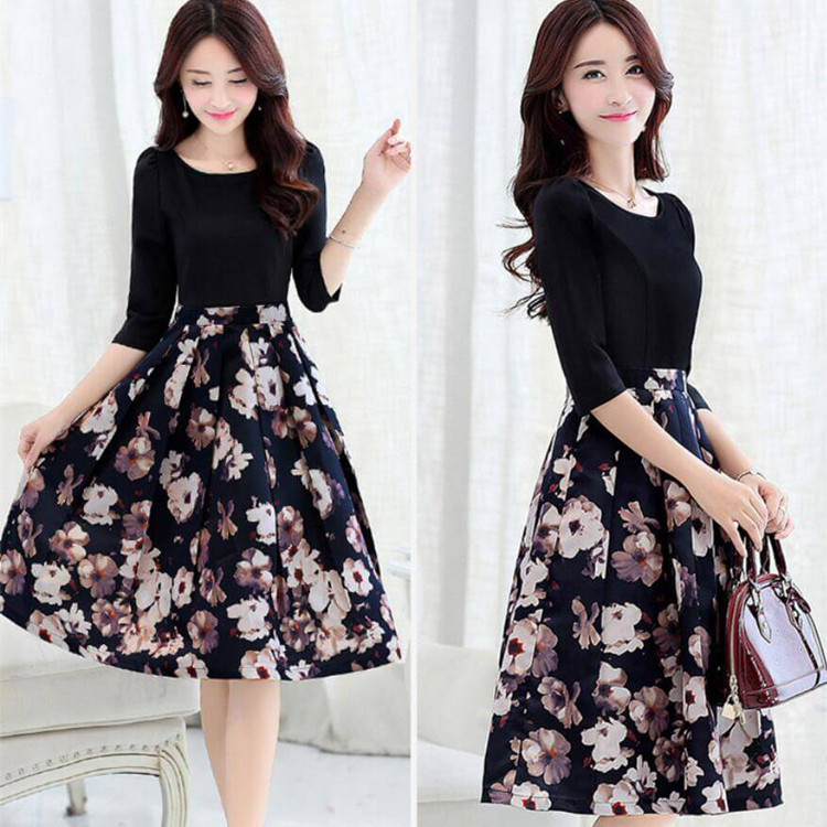 ライン ロング ミディアム丈 膝丈 花柄 ワンピ ワンピース ロングワンピース リゾートレディースファッション ワンピース
