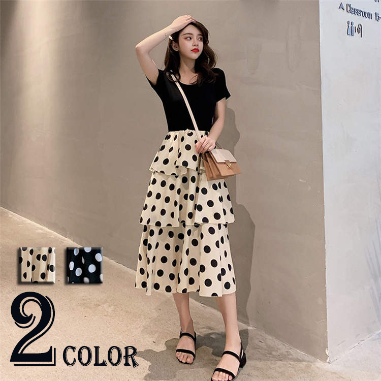 ウエストリボン シンプル 痩せ シンプル お洒落 夏物 カジュアル シンプル 裾フリル フリルワンピす お出かけ ブラウス スポーツ ラインスカート