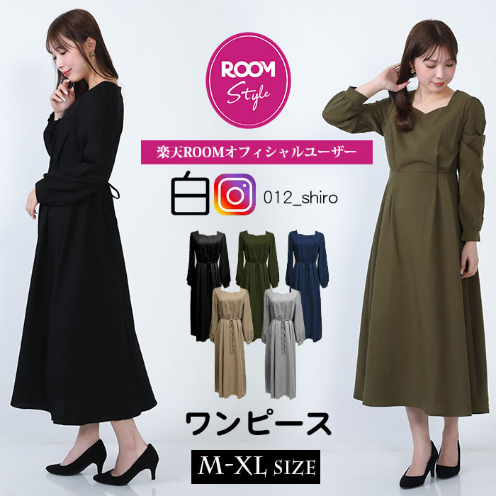 ワンピース Aライン レディース 春 秋 大人 上品 ポリエステル カジュアル きれいめ ゆったり エレガント 長袖 Vネック ミディアム丈