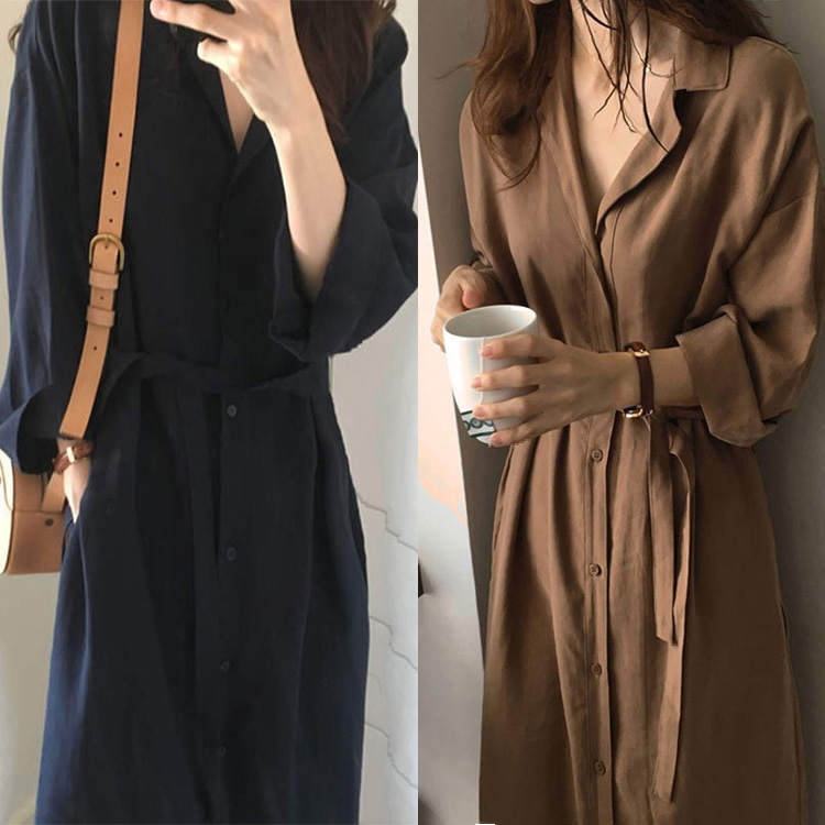シャツワンピース Aライン レディース 春 秋 大人 上品 ポリエステル ビーチ きれいめ ゆったり エレガント ミディアム 長袖