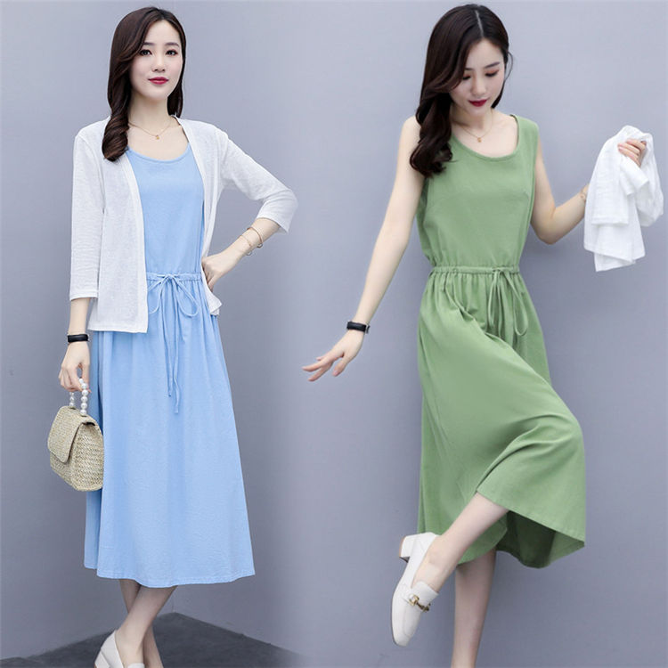 二点セット ワンピース ノースリーブ コート レデイース 母の日 優雅 リネンワンピース リネン 無地 夏秋 お出かけ