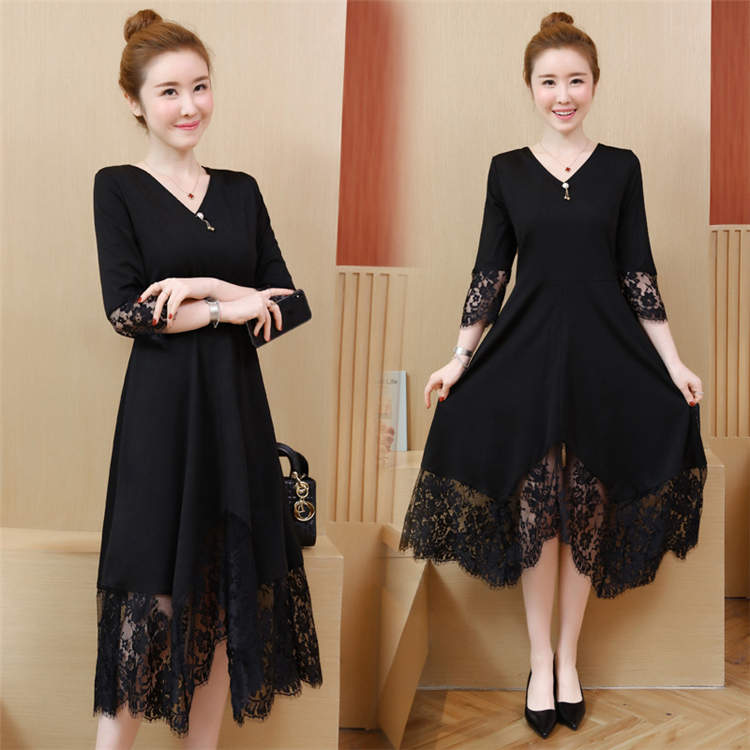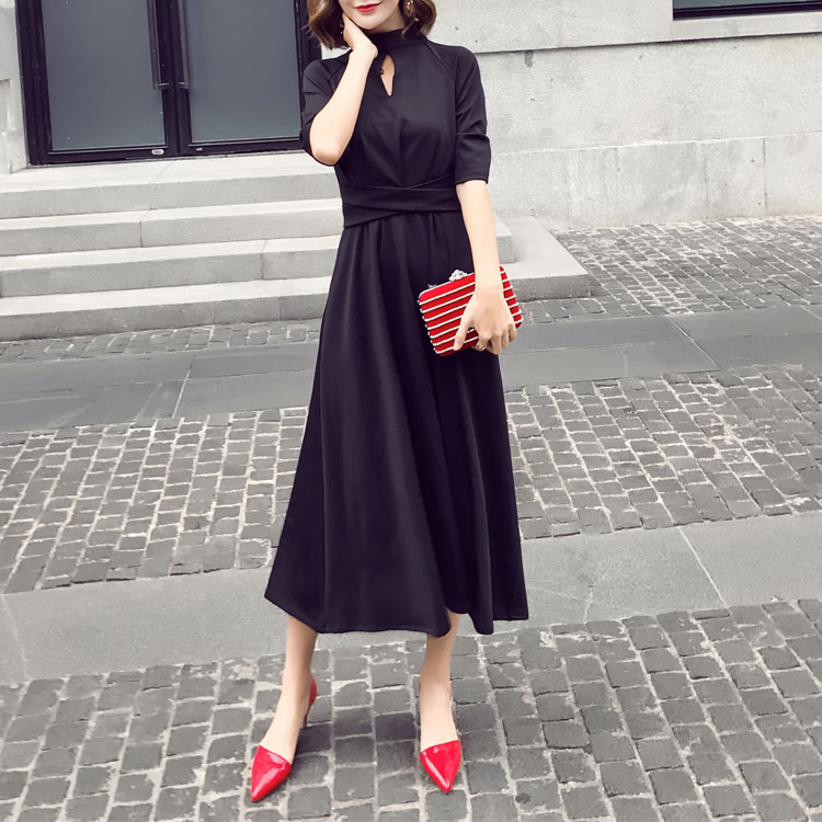 ワンピース 五分袖 ライン ワンピース 大人 可愛い 人気 ワンピース 夏 ロング丈 フォーマル マキシワンピース 上品 通勤 同窓会 ブラック