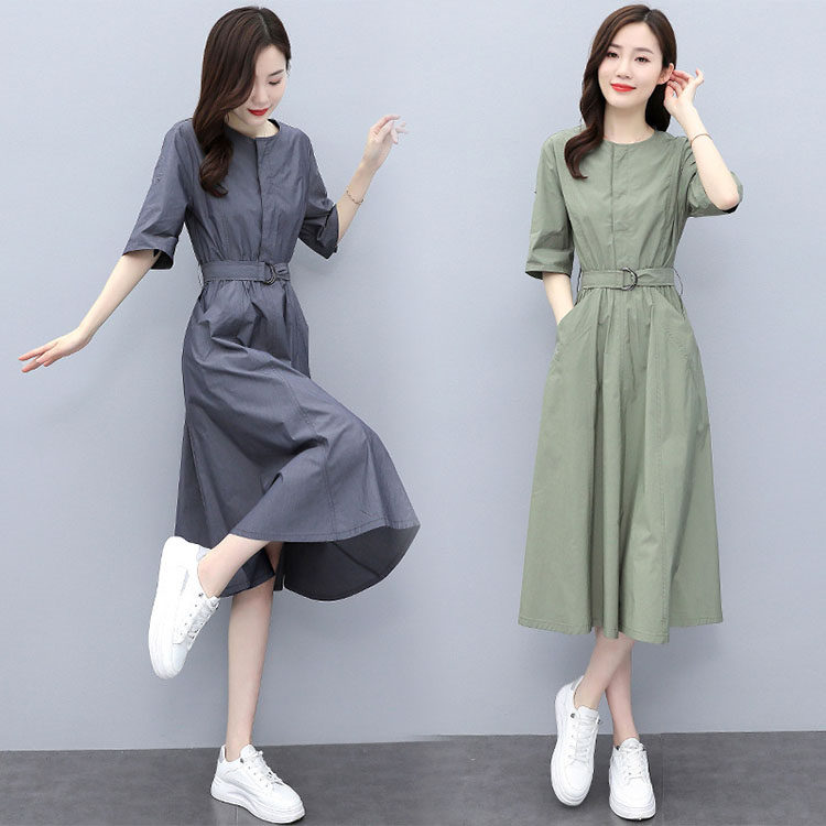 ワンピース 五分袖 ラウンドネック レディース 無地 Aライン 大きいサイズ 普段着 きれいめ お出かけ ミモレ丈 ロングワンピ 上品 体型カバー 大人 おしゃれ ファッション L-807