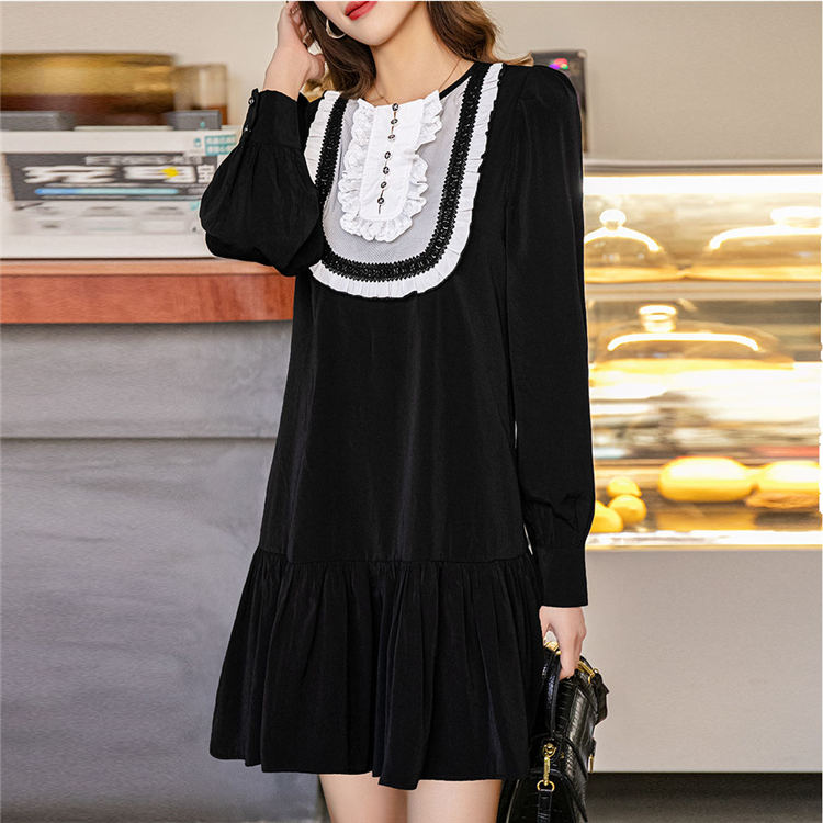 ワンピース 春 秋 長袖 レース レディース ブラック ライン きれいめ お出かけ ショート 体型カバー 大人 おしゃれ ファッション 低身長 可愛い ミニドレス エレガント -670