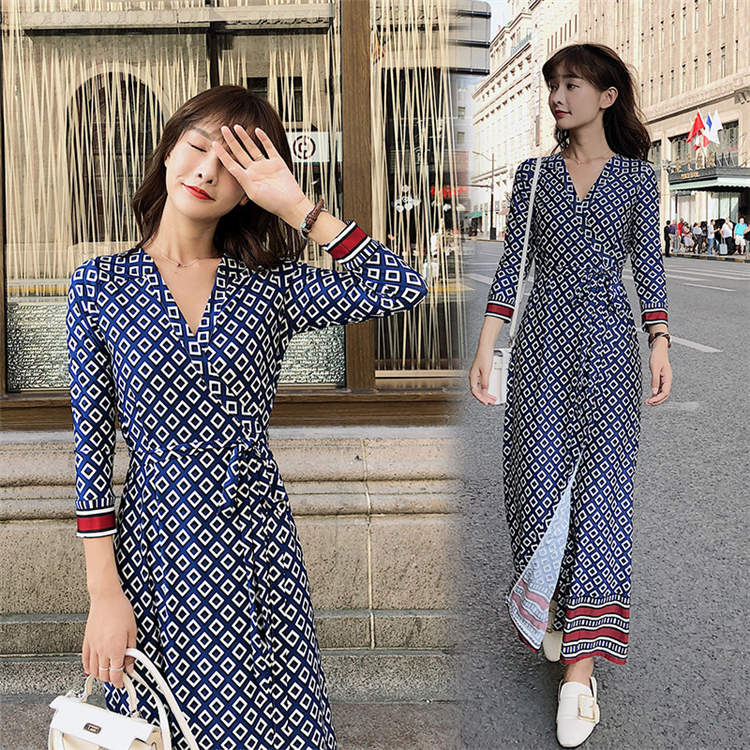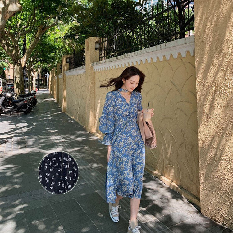 ワンピース シフォンワンピース 春 秋 長袖 Vネック ライン きれいめ ファッション 大きいサイズ お出かけ ミモレ丈 ロングワンピ 上品 体型カバー 大人 母の日 おしゃれ 花柄 -571