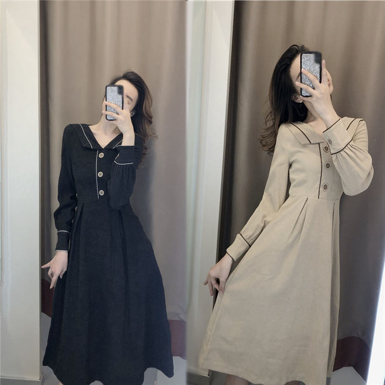 ワンピース 春秋 長袖 襟 大きいサイズ 無地 Aライン ブラックミモレ丈 ロングワンピ 上品 体型カバー 大人 きれいめ お出かけ ベージュ おしゃれ ファッション 結婚式 lianyiqun-58