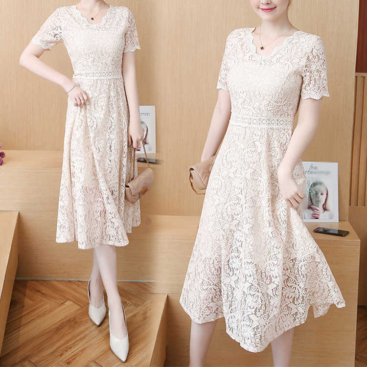 女性 ワンピース レデイース レース ネック 膝丈 ミディアムレディースファッション ワンピース