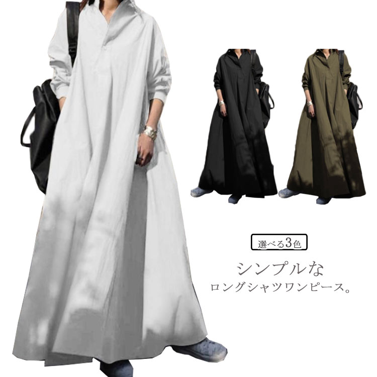 長袖 マキシ丈ワンピ レディース ワンピース 秋 オーバーサイズ ビッグサイズ 大きいサイズ 大人カジュアル ネック シンプル シャツ 部屋着 モダール