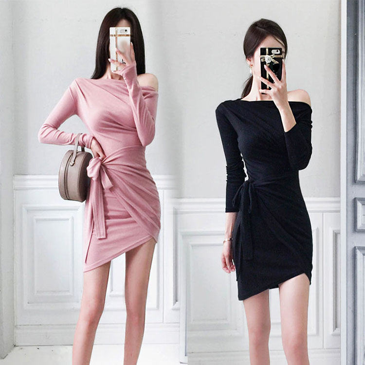 ワンピース 春 秋 長袖 大人 上品 エレガント 肩出し お出かけ セクシー タイト フェミニン ショート パーティー お洒落 女の子 礼服 きれいめ クラブ レディース 大人切り替え お呼ばれ