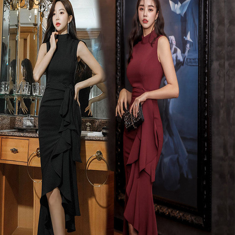 ワンピース フリル ノースリーブ 大人 上品 エレガント マーメイドスカート お出かけ セクシー 夏 ミニワンピース 大人切り替え お呼ばれ 結婚式 礼服 きれいめ クラブ レディース フェミニン パ