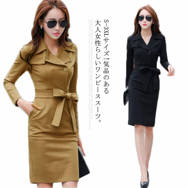 ワンピーススーツ ワンピース フォーマルワンピース リボン 春 秋 膝丈 ミディアム丈 通勤 キレイめ おしゃれ 女性 長袖ワンピース