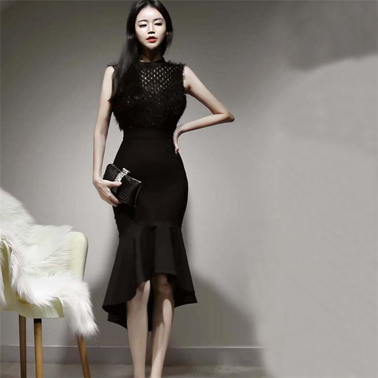ワンピース ノースリーブ ブラック マーメイド 大人 きれいめ クラブ レディース お出かけ セクシー 女性 結婚式 フェミニン 大人切り替え パーティドレス 優雅 礼服 お呼ばれ xinggan-4