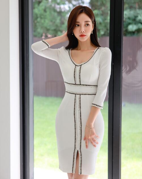 ♪~展開♪ワンピース 結婚式 着痩せ おしゃれ ワンピ セクシーワンピース ブラック黒キャバ 膝丈 長袖切替大人 スタイル 上品 韓国 結婚式 二次会 パーティ ー 発表会 お呼ばれ同窓会 謝恩