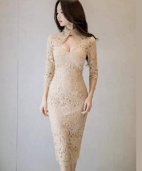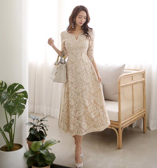 ワンピース 結婚式 着痩せ おしゃれ ワンピ セクシーワンピース キャバ レース透け感膝丈 七分袖大人 スタイル 上品 韓国 結婚式 二次会 パーティー 発表会 お呼ばれ同窓会 謝恩会