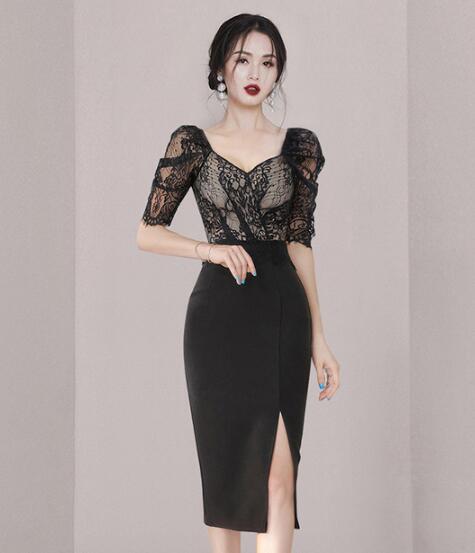 ♪~展開♪ワンピース 結婚式 着痩せ おしゃれ ワンピ セクシーワンピース キャバ 膝丈 半袖五分袖レース大人 スタイル 上品 韓国 結婚式 二次会 パーティ ー 発表会 お呼ばれ同窓会 謝恩会