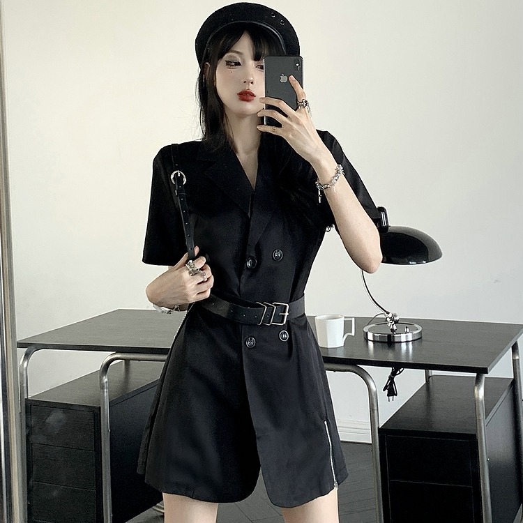 ワンピ 半袖 切り替え スリム 無地 原宿系ファッション 韓国風ダンス 衣装 ヒップホップ 個性 奇抜 かわいい 青文字系 ワンピース チュニック レディース 女