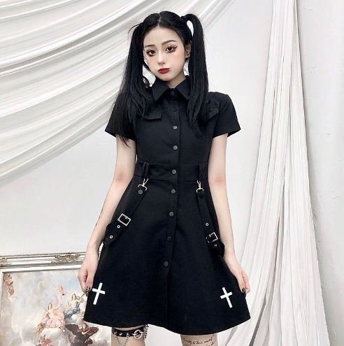 ワンピ 半袖 切り替え スリム 系 原宿系ファッション 韓国風 ダンス衣装 カワ 個性 奇抜 かわいい 青文字系 ワンピース チュニック レディース 女