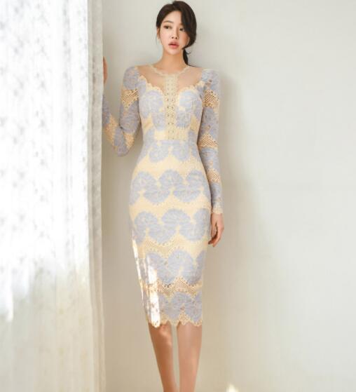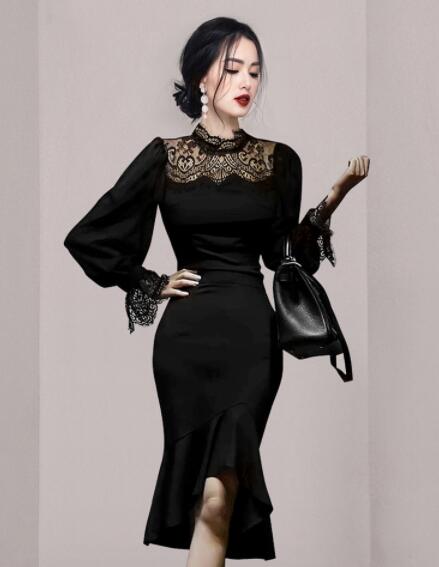 ♪2色展開♪ワンピース 結婚式 着痩せ おしゃれ ワンピ セクシーワンピース キャバ レース透け感膝丈 長袖大人 スタイル 上品 韓国 結婚式 二次会 パーティー 発表会 お呼ばれ同窓会 謝恩会