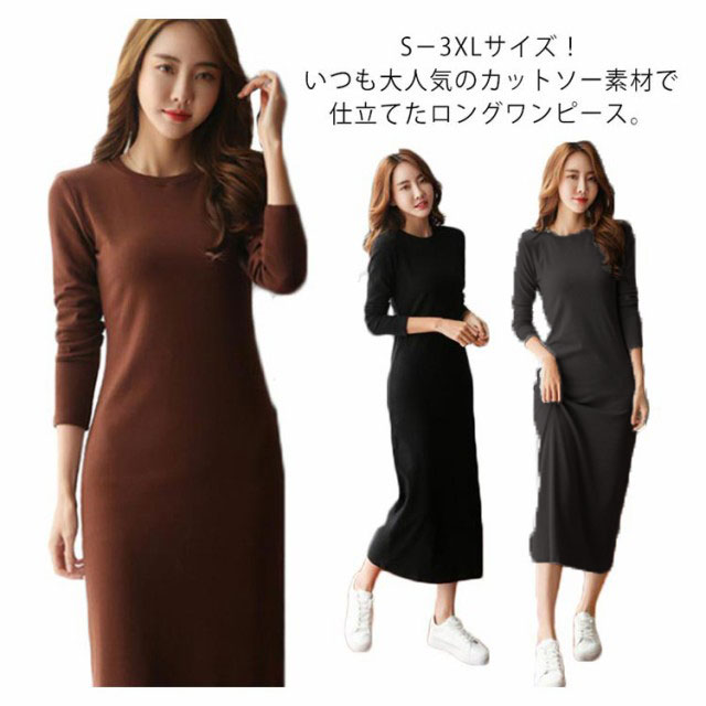 ロングタイトワンピース カットソー素材 ワンピース ロング 膝下丈 大きサイズレディースファッション ワンピース