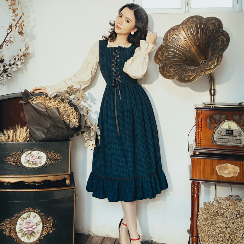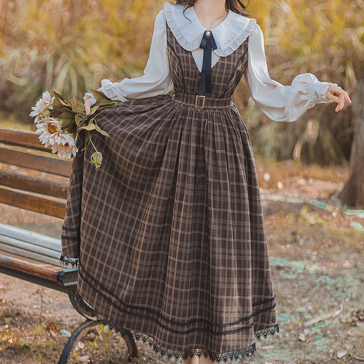 清楚系 姫系 レトロ こんなの欲しかったが詰まったワンピース 安定のブラウンチェック☆レディースファッション ワンピース