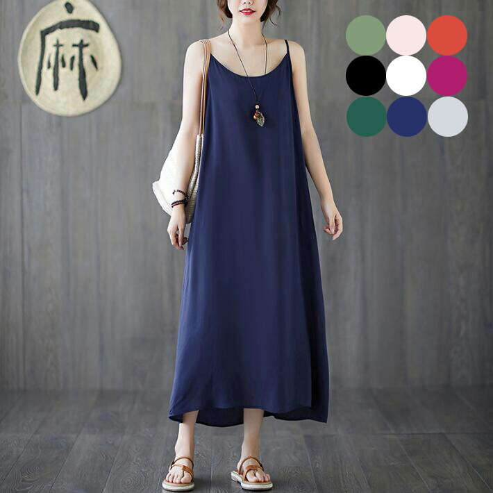 キャミソールワンピース ノースリーブワンピースインナーワンピースロングワンピース レディース前後差きれいめ キャミソールロングワンピミモレ Aライン お出かけ 春 夏