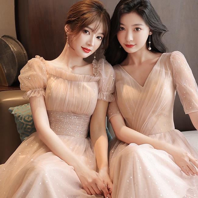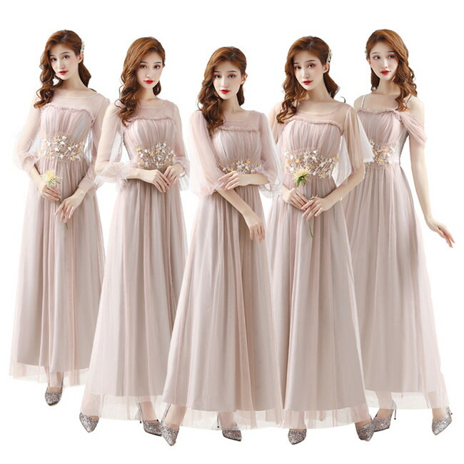グレー 肉ピンクブライズメイドドレスパーティードレスワンピース二次会演出司会結婚式お呼ばれ ロングドレスマキシ丈ブライズメイドドレス二次会ドレスフォーマルドレス