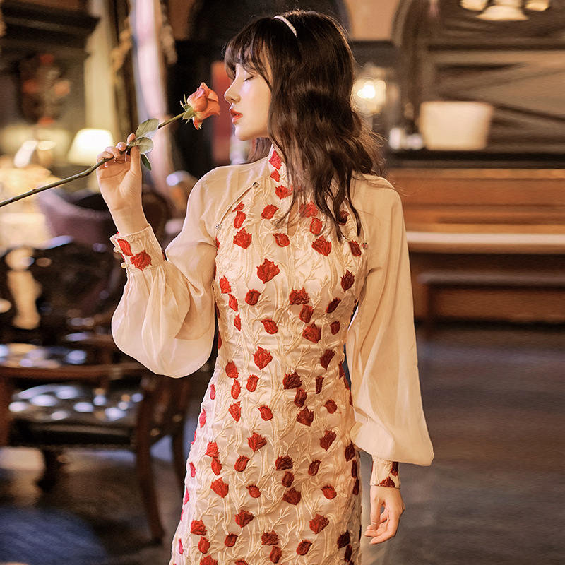 秋 レトロワンピース レディースワンピース チャイナドレス ドレス チャイナワンピース レディースワンピース レトロ調 エスニック 刺繍 刺繍ワンピース レース きれいめ 着痩せ おしゃれ 透け バル