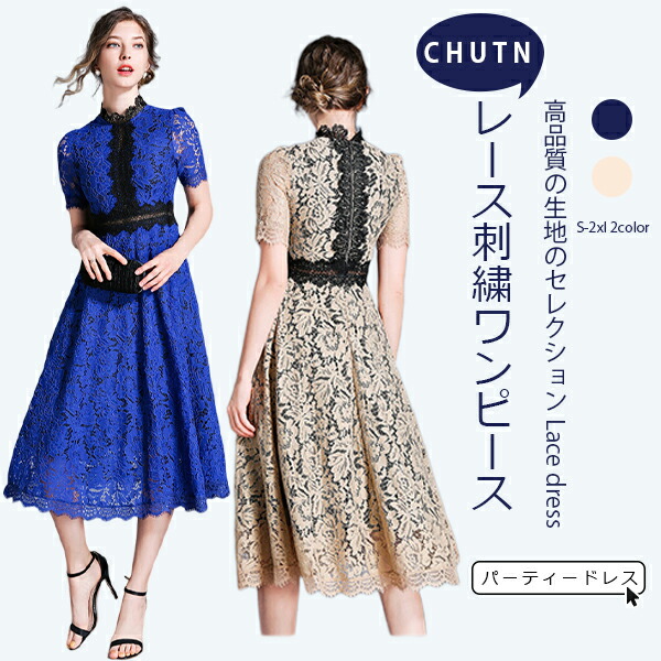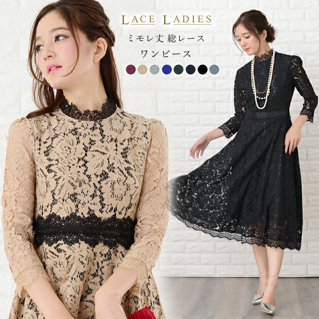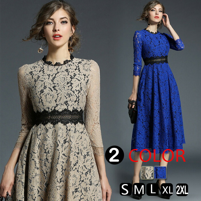 パーティードレス 30代 パーティードレス 20代 結婚式 ワンピース レース 結婚式 ドレス ミモレ丈 ワンピース 大人 上品 二次会 ワンピース パーティー ワンピース