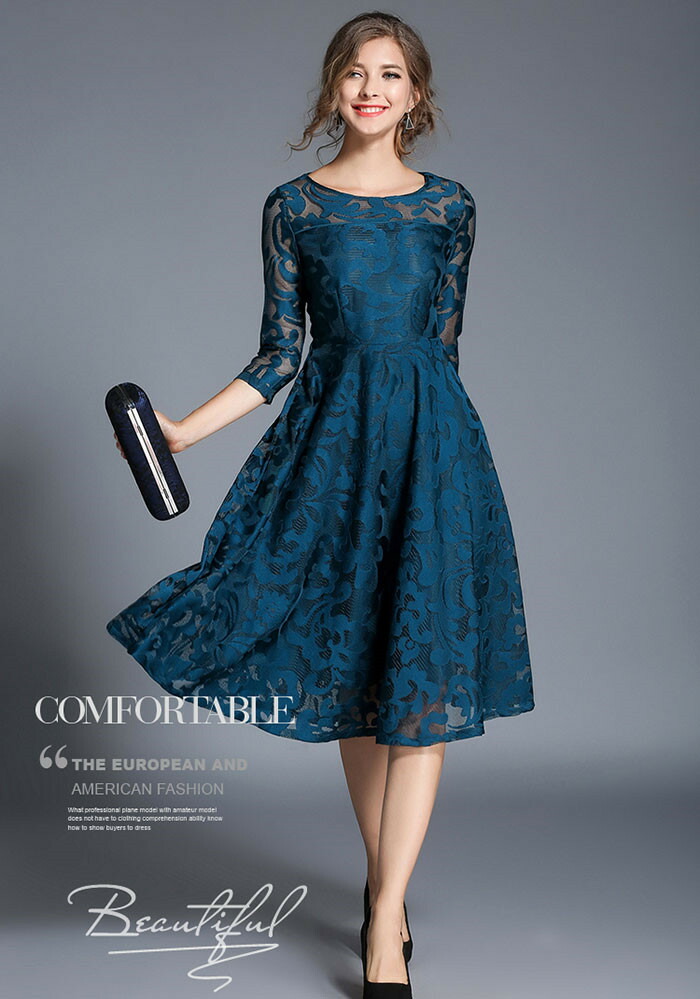 ブルー ミデイアム丈ミディアム丈ミディアムドレス 二次会ドレス フォーマルドレス春 夏 秋 冬 パーティドレス 二次会 2次会 レース 成人式 同窓会 謝恩会 大学生 服装 入学式 卒業式 かわいい