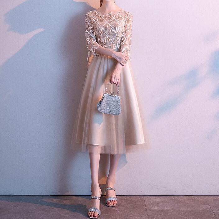 レディース ワンピース ドレス ショート ミモレ ノースリーブ 5分袖 Aライン ファスナー スパンコール 大人可愛い きれいめ 上品 おしゃれ ガーリー クール エレガント フォーマル 都会的